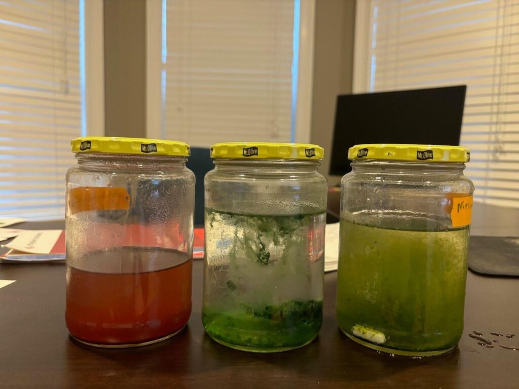 The filter was connected to a small tank of food waste to simulate a decomposing, anaerobic environment.