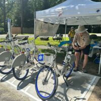 The rail trail is not just for bikes! Users are diverse – seniors, families with strollers and small children, bigger kids just learning to ride a bike, roller-skaters and inline-skaters, scooters and adult tricycles. A variety of bikes – new bike designs with great fat “beach buggy” tires; custom artistic bikes with years of design built on; the occasional bike gymnast spinning wheelies in place, like a break-dancer, on the back wheel. And of course the “serious” bikers, as if training for the Tour de France – sometimes solo, sometimes pairs or groups – jockeying for position, staying in the lead rider’s slipstream or breaking out to take the lead.